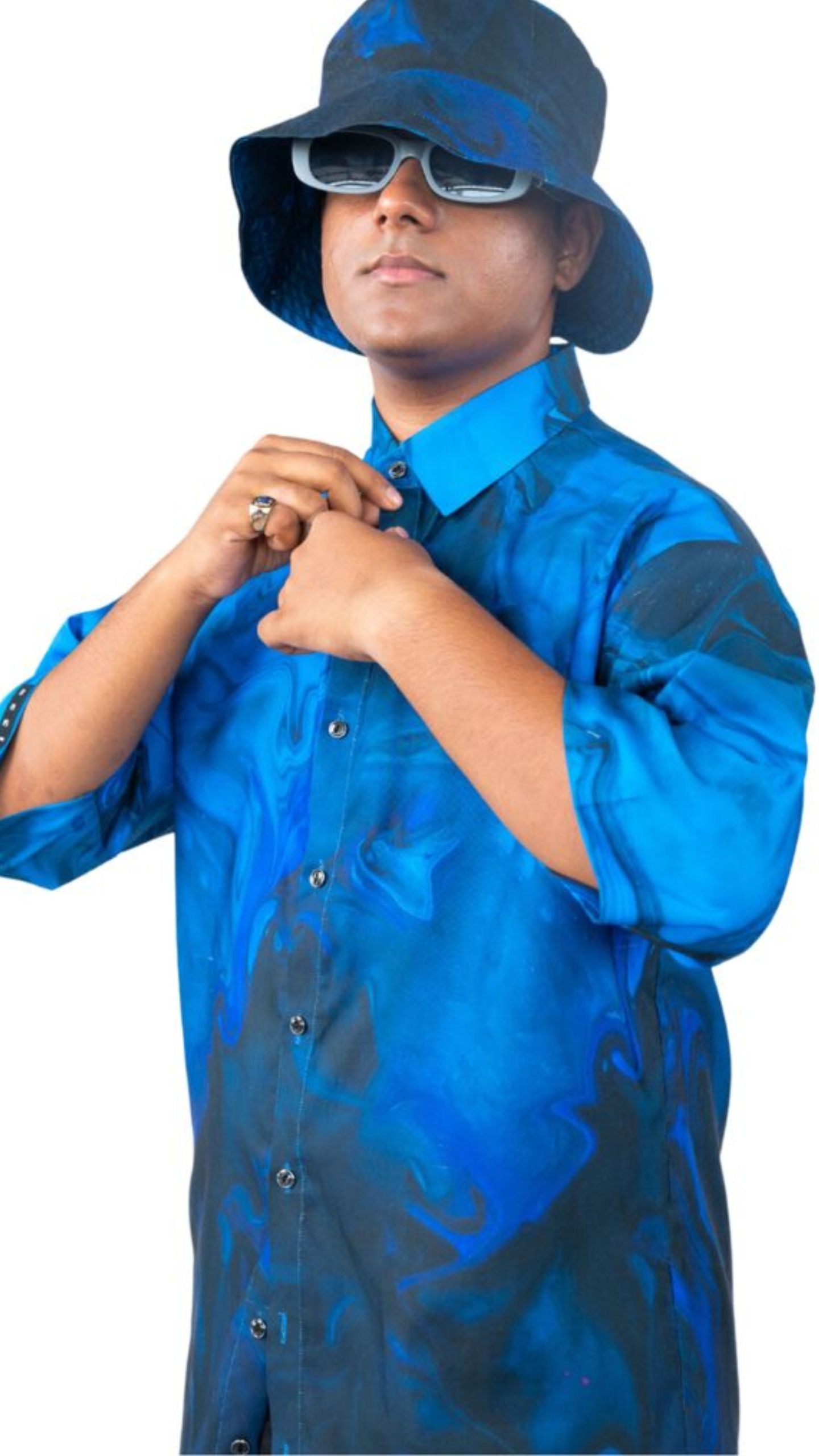 Oversized half-sleeve shirt with a "Neptune" print, inspired by the planet's colours. Effortlessly relaxed fit for any occasion.